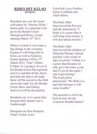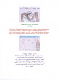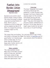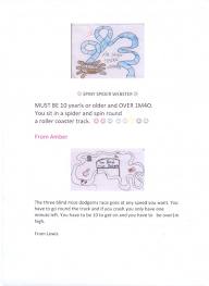 We are delighted to have received the first work sent by Amy Turnbull, the teacher of the primary 6 children at Edenside Primary School in the Scottish Borders who are doing a Fairground topic based around our site. We publish all their work and have to say we love the imagination and the thought that they have put into this.