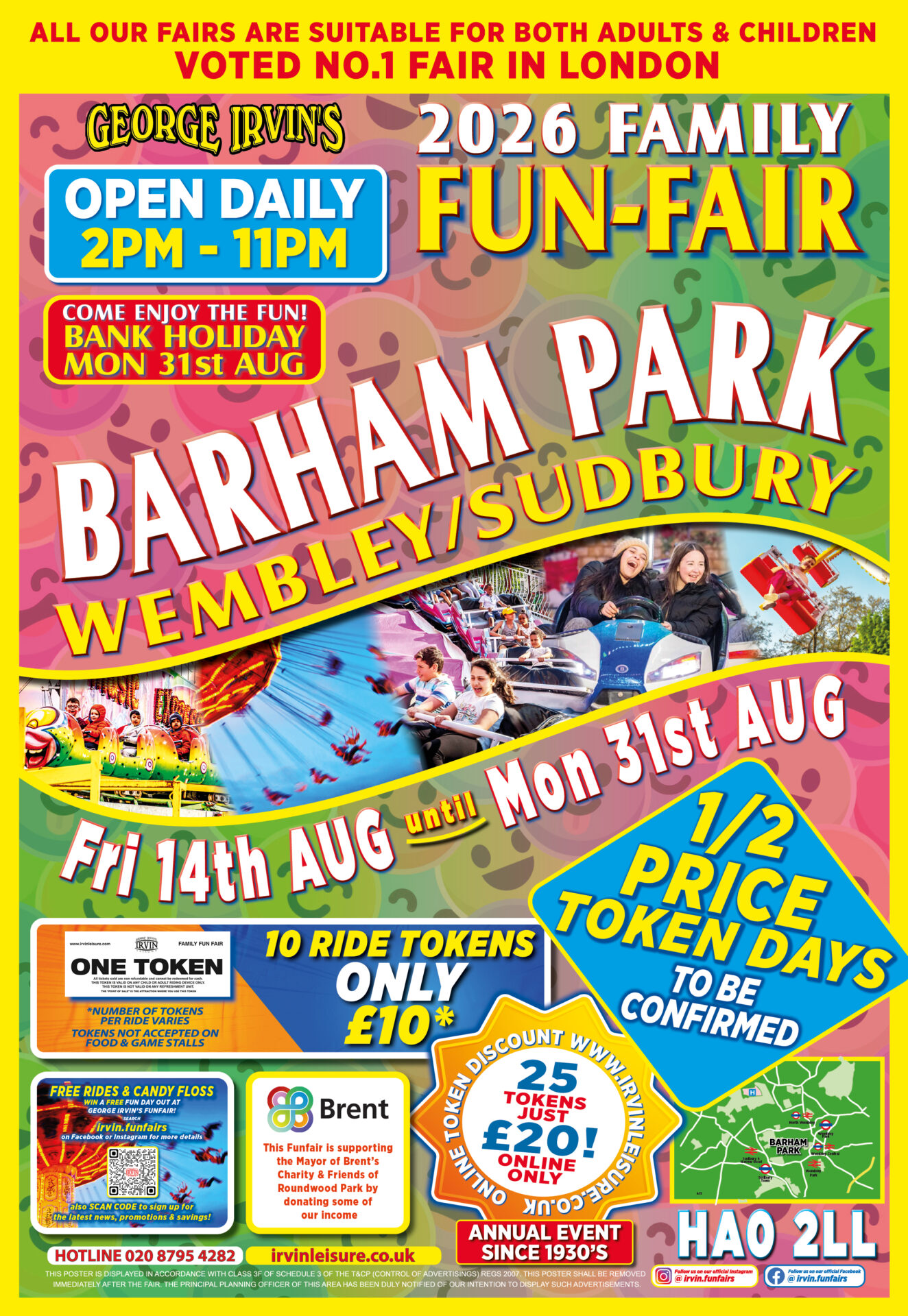 Ride tokens are on sale at the funfair entrance & online at £10 for 10 tokens.