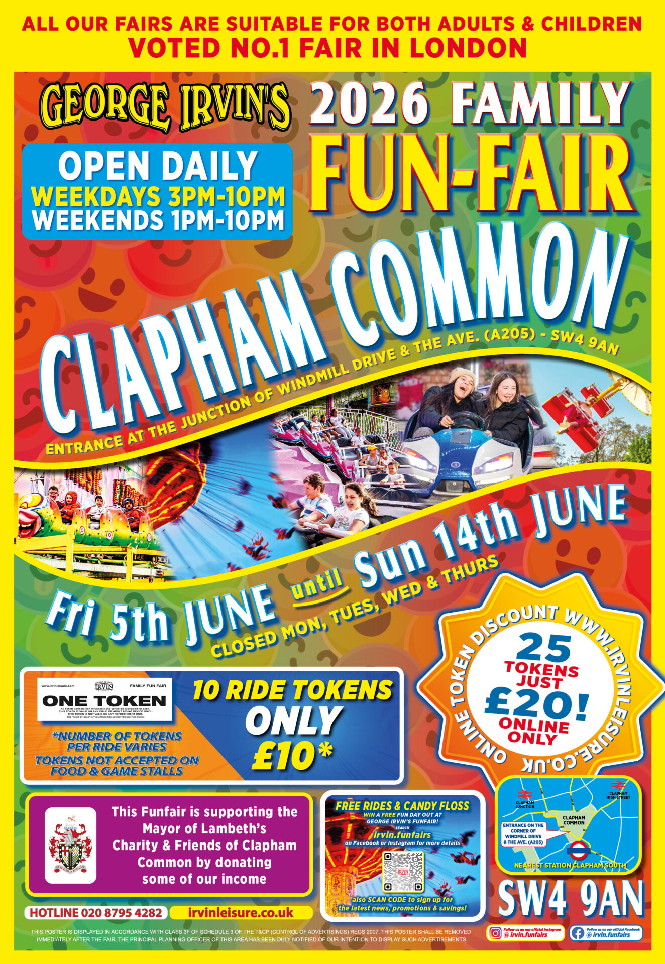 Ride tokens are on sale at the funfair entrance & online at £10 for 10 tokens.