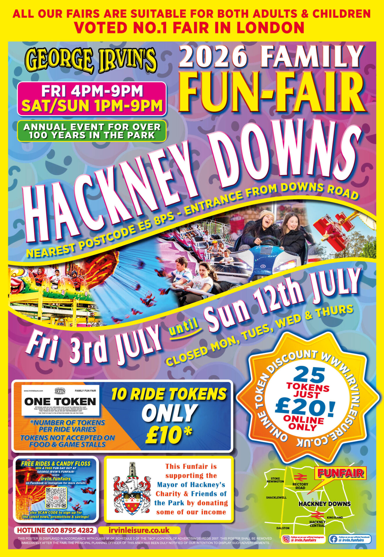 Ride tokens are on sale at the funfair entrance & online at £10 for 10 tokens.