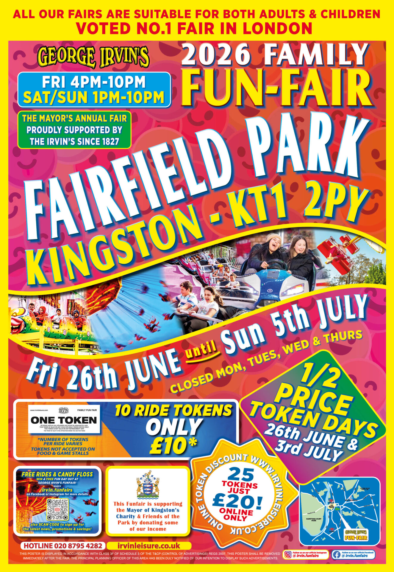 Ride tokens are on sale at the Funfair entrance & online at £10 for 10 tokens, except for on Fridays, when ride tokens are half-price!