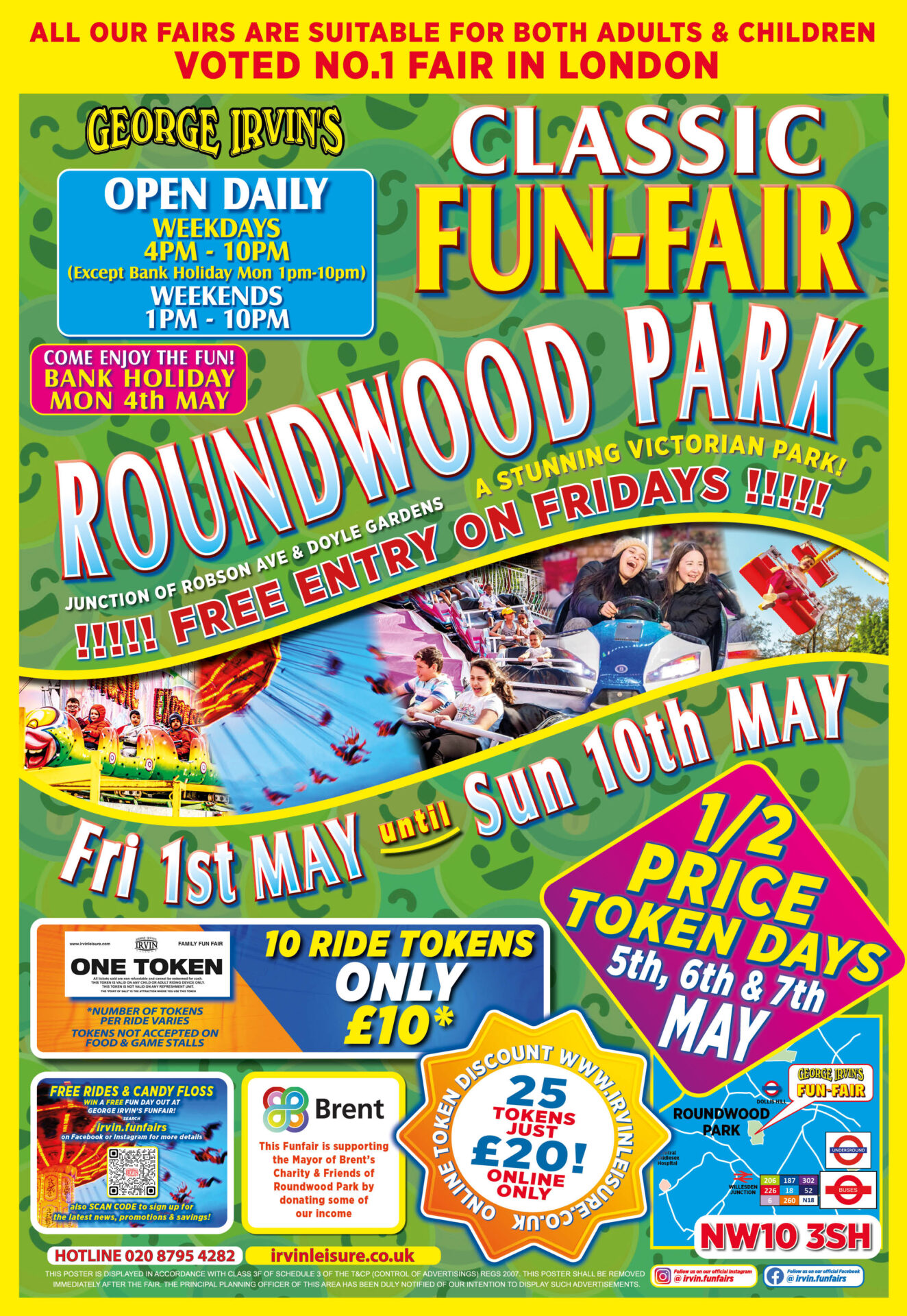 On Tuesday 5th May, Wednesday 6th May & Thursday 7th May ride tokens are half-price.
